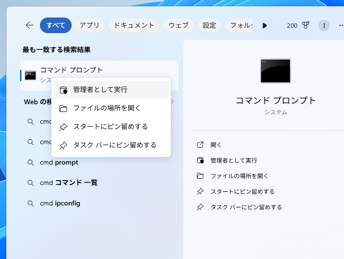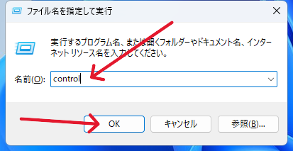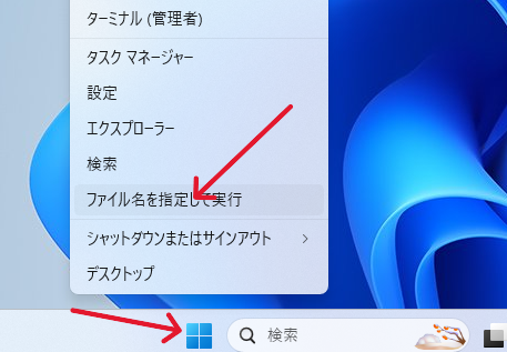 スタートボタンを右クリックして、ファイルを指定して実行をクリック