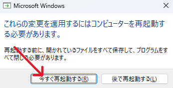 終わると再起動を促されるので 今すぐ再起動する を選択する