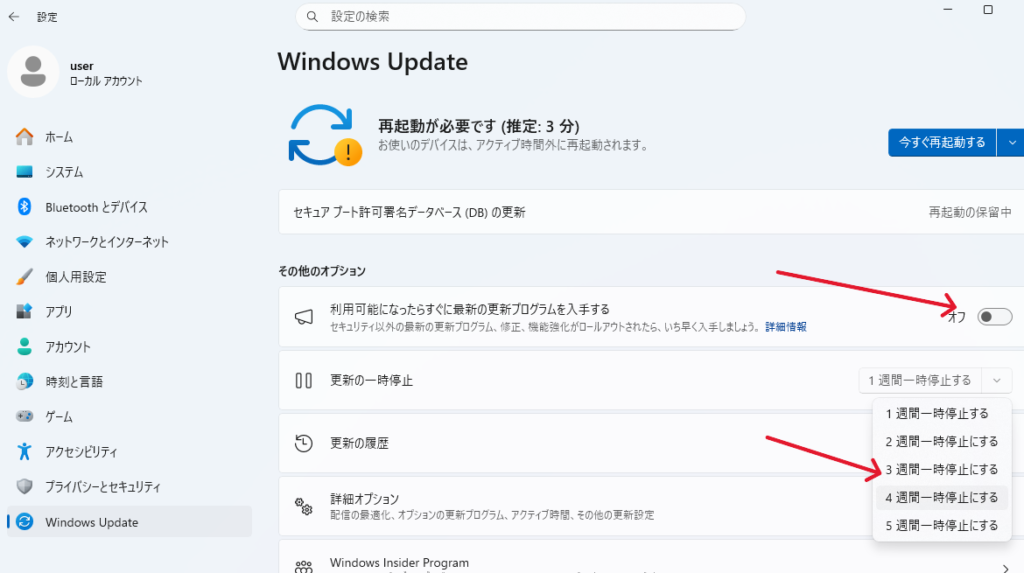 利用可能になったらすぐに最新の更新プログラムを入手するのスイッチをクリックして